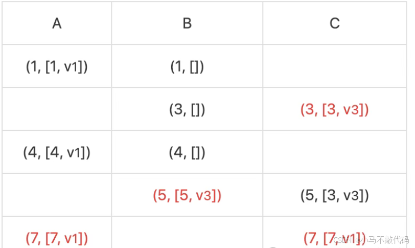 上图中,提议[3, v3],[5, v3]分别被B、C接受。虽然出现了v3被多数派接受,但不能说明v3被选定(Chosen)。只有提议[7, v1]被多数派(A和C组成)接受,才能说v1被选定,而这个选定的值随着协议继续进行不会改变。
