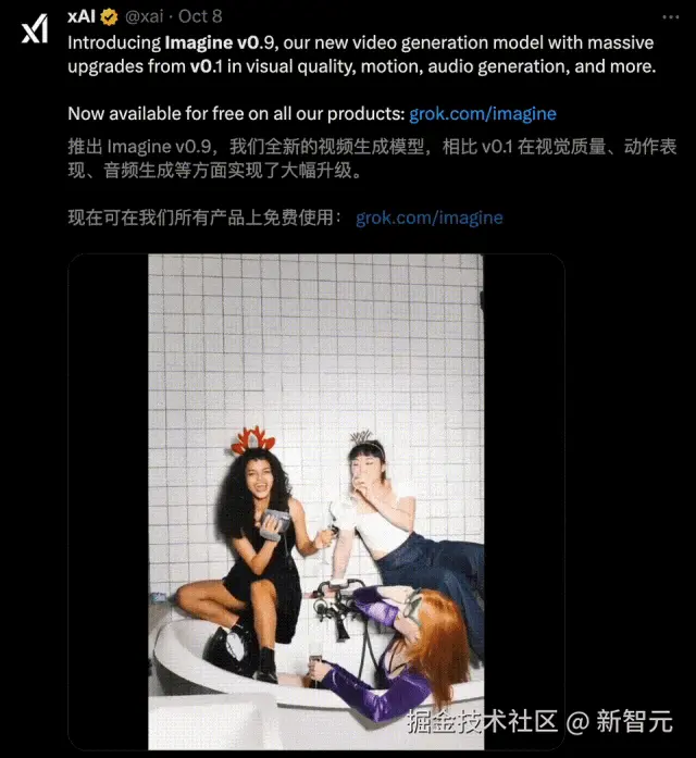 谷歌 Veo 3、OpenAI Sora 2,以及马斯克 xAI 最新放出的 Imagine v0.9,均在音画同步、人物一致性等方面,掀起一波又一波的创新狂潮。