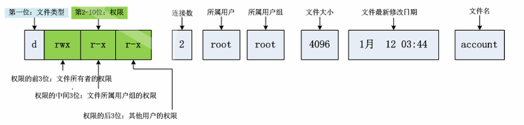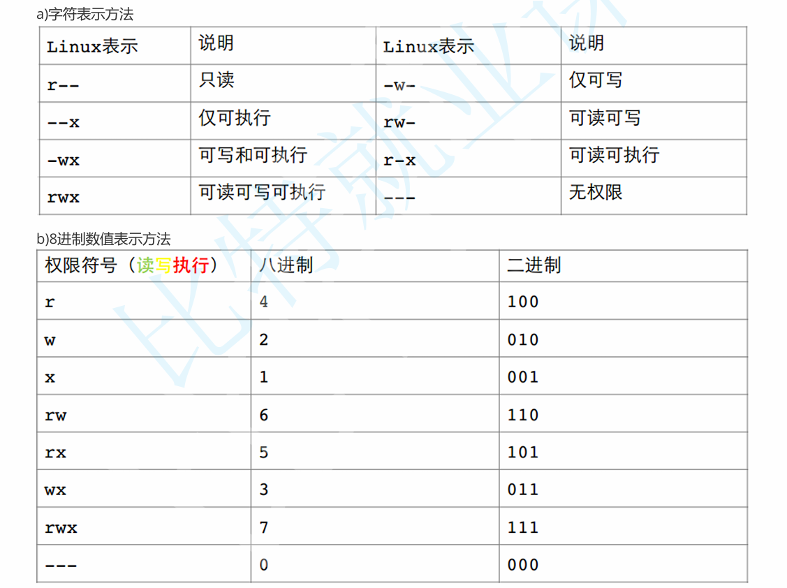 :以3位一组,向后数分别代表所有者,所属组,其他人的权限