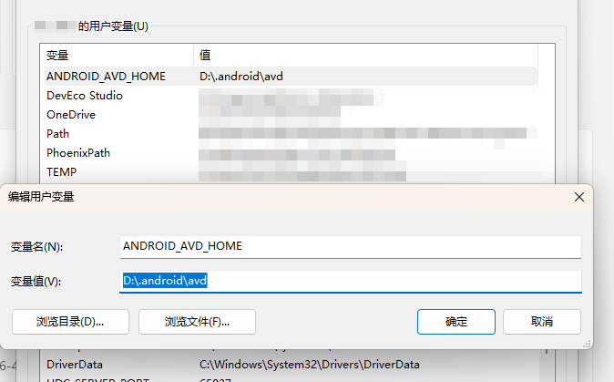 AVD默认目录:C:\Users\用户名\.android\avd。为了节省C盘本身的空间,AVD的所在目录是可以修改的,增加一个Windows的用户属性 ANDROID_AVD_HOME 即可:重启生效。