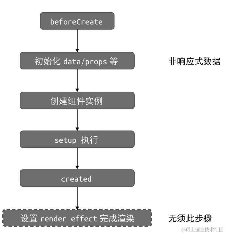 另外,由于组件在服务端渲染时,不需要渲染真实 DOM 元素,所以无须创建并执行 render effect。