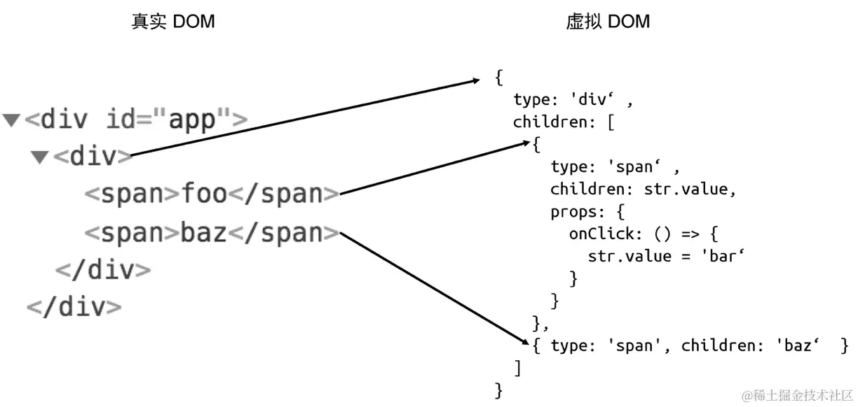 - Vue.js 在当前页面已经渲染的 DOM 元素以及 Vue.js 组件所渲染的虚拟 DOM 之间建立联系。