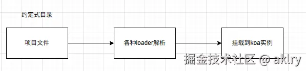 elpis-core 是elpis框架服务端的启动引擎 ,它利用koa 作为底层,通过loader 的方式结合约定式目录 将每一个目录中的文件都转换为一个对象挂载到koa实例。如图所示: