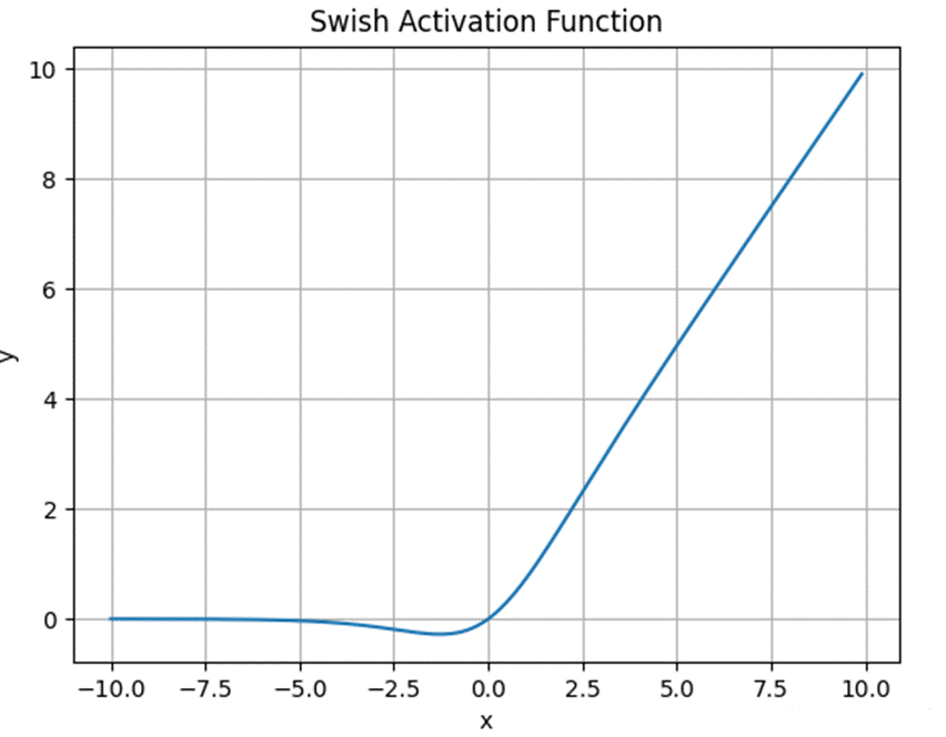 Swish 函数由 Google Brain 团队在 2017 年提出,其设计灵感来自于对神经网络中复杂模式的观察。Swish 函数的独特之处在于它结合了线性和非线性的特性 。