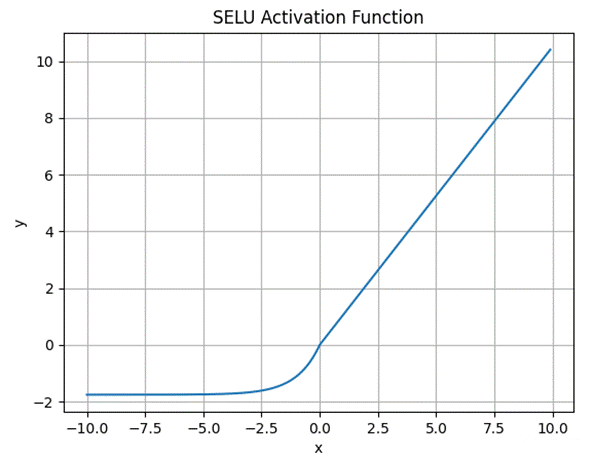 其中 α=1.67326,λ=1.0507,这些值是通过论文优化得到的 。当配合特定的初始化方法(如 LeCun 正态初始化)时,SELU 能够使每一层的输入保持零均值和单位方差,大幅简化超参数调优。