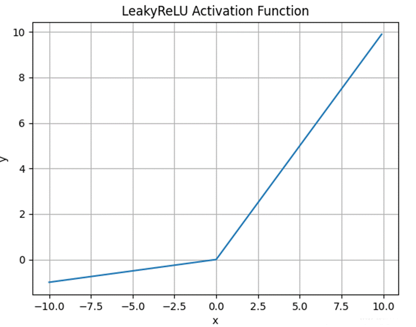 其中 α 是一个小的常数(通常取 0.01 或 0.02)。Leaky ReLU 在负值区域引入了一个小的斜率,使得负值输入也能产生一定的输出,从而避免神经元死亡。