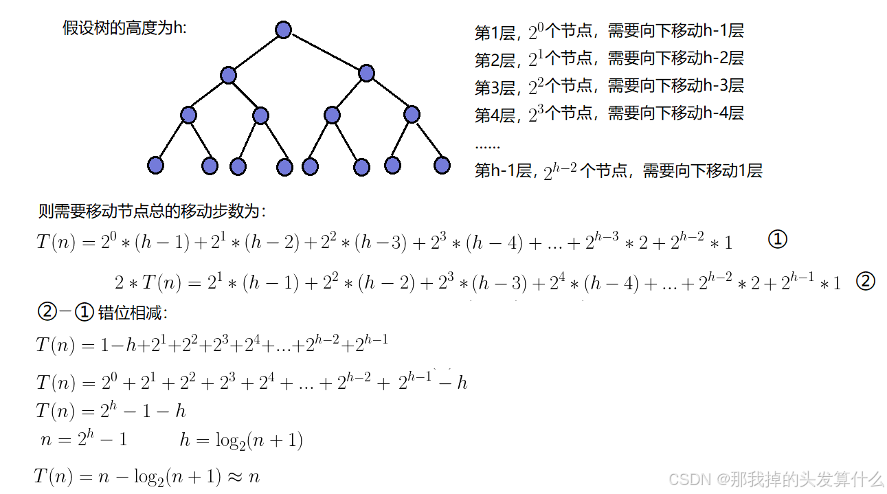 因为堆是完全二叉树,而满二叉树也是完全二叉树,此处为了简化使用满二叉树来证明(时间复杂度本来看的就是近似值,多几个节点不影响最终结果):