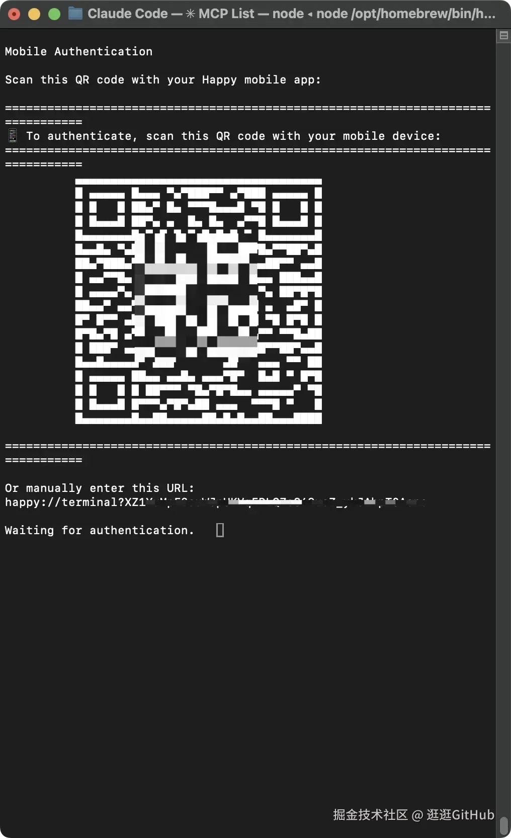 此时打开你手机上安装的 Happy,打开相机扫描你电脑上的二维码。