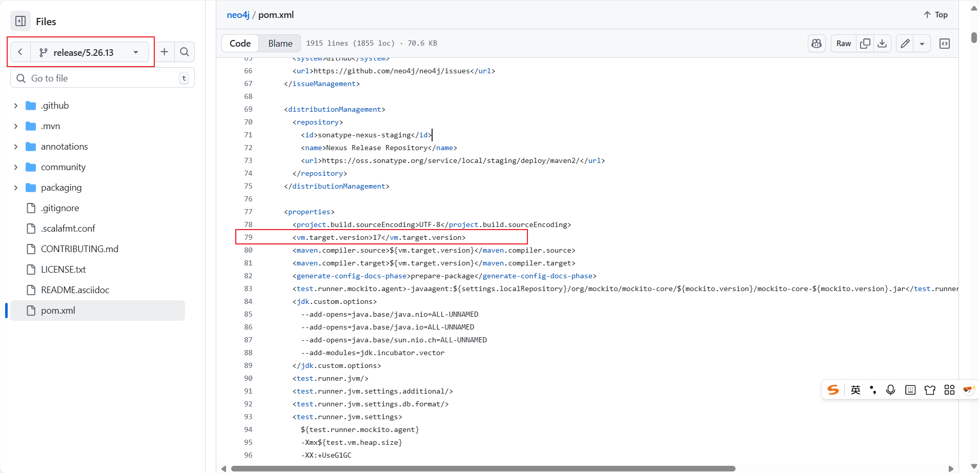 官方 Github 的 pom.xml 版本也是 JDK 17,README.md 里也一样。