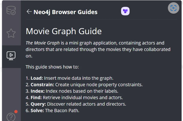 下面我们通过官方提供的电影数据体验下Neo4j: