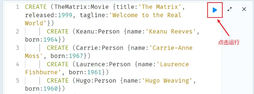 创建数据语句会自动写入到Cypher语句输入框中,点击运行: