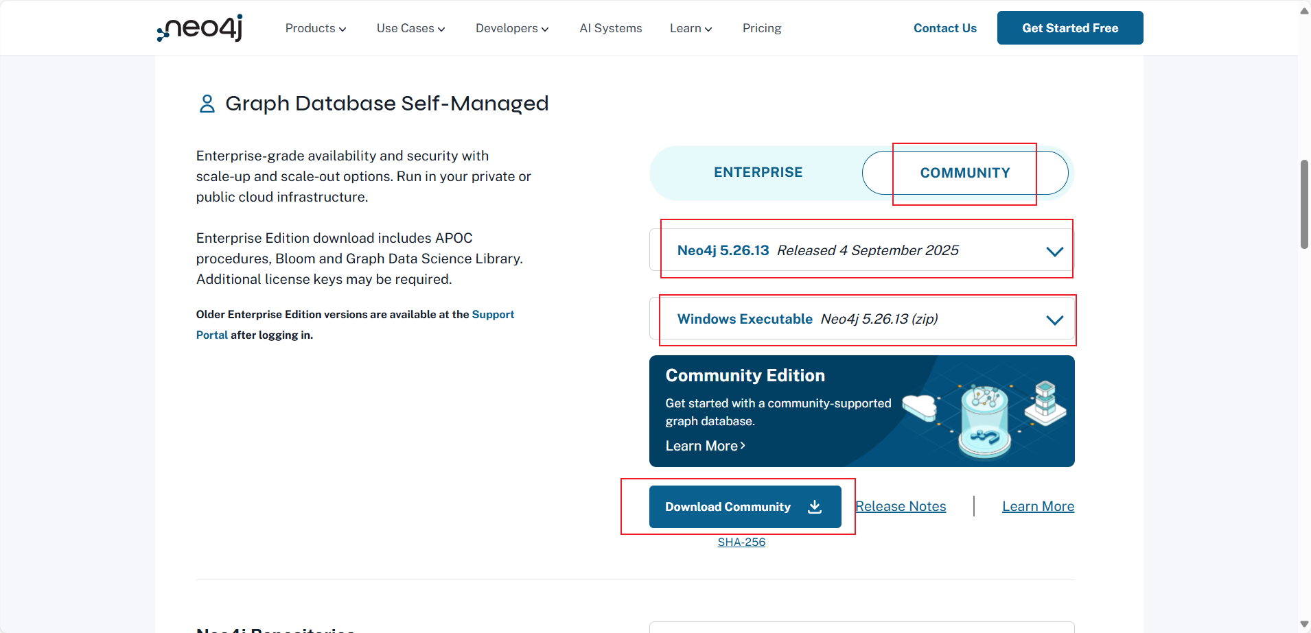 我们选择下载的 Neo4j 5.26.13 版是最新的长期稳定版。