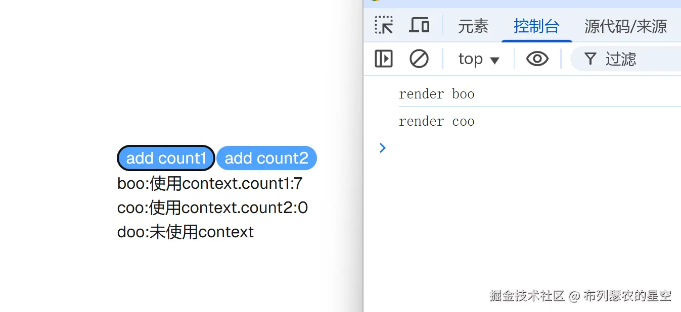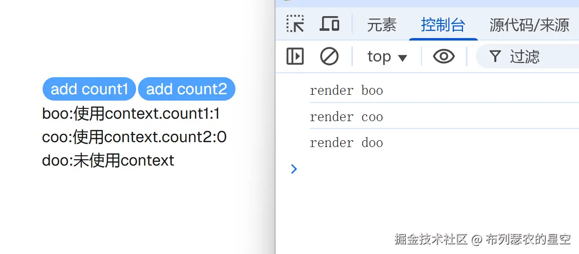 这样Doo组件确实没有额外更新了,但是Boo和Coo,两个组件分别依赖context中某个值,该值即使没有变也会更新。这种情况即便添加了memo,也无法阻止额外更新。