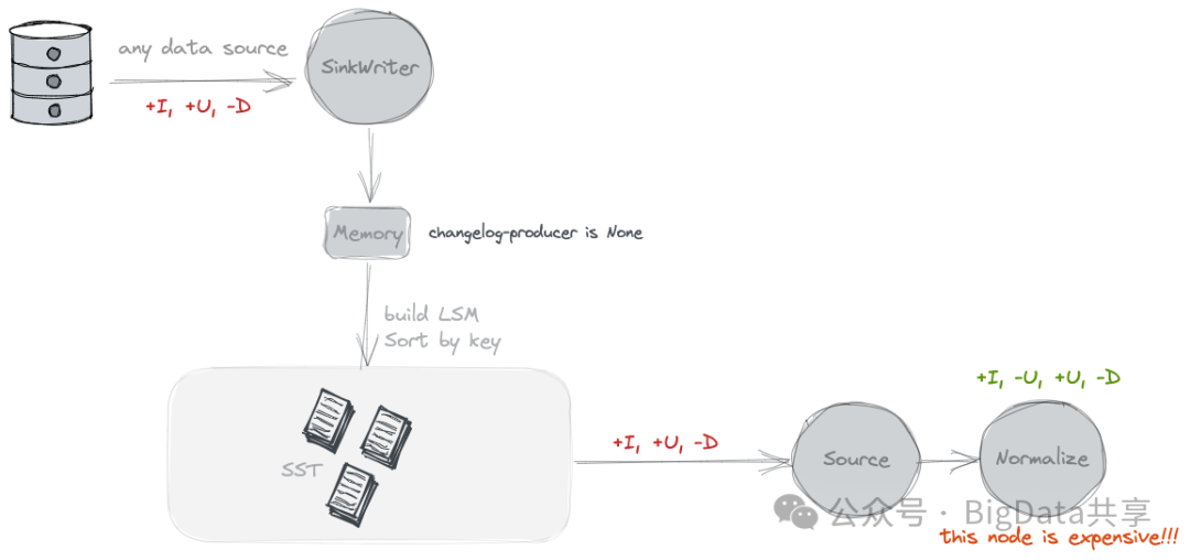 ChangelogNormalize这个算子就是用来记录不同快照间的数据变更,维护这么一个状态,这个成本是非常高的。
