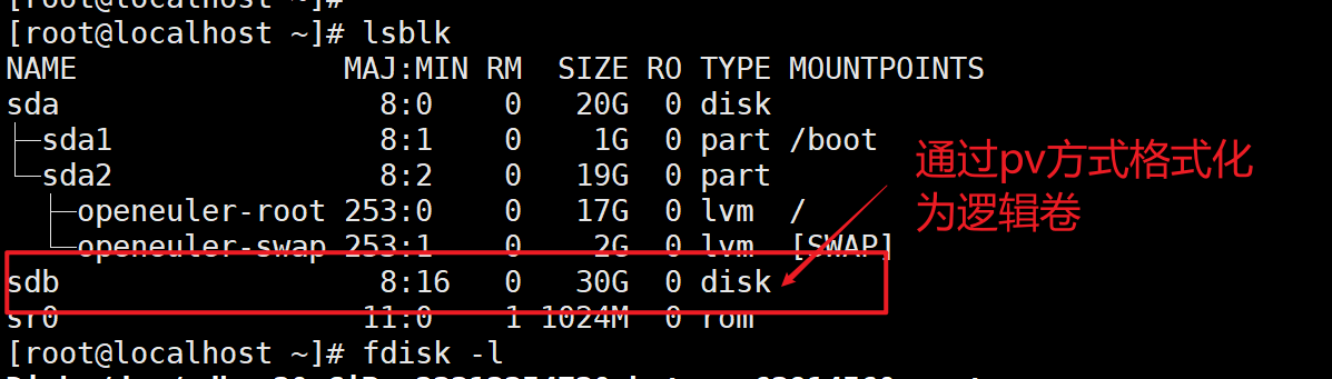 ├─openeuler-root 253:0 0 17G 0 lvm /