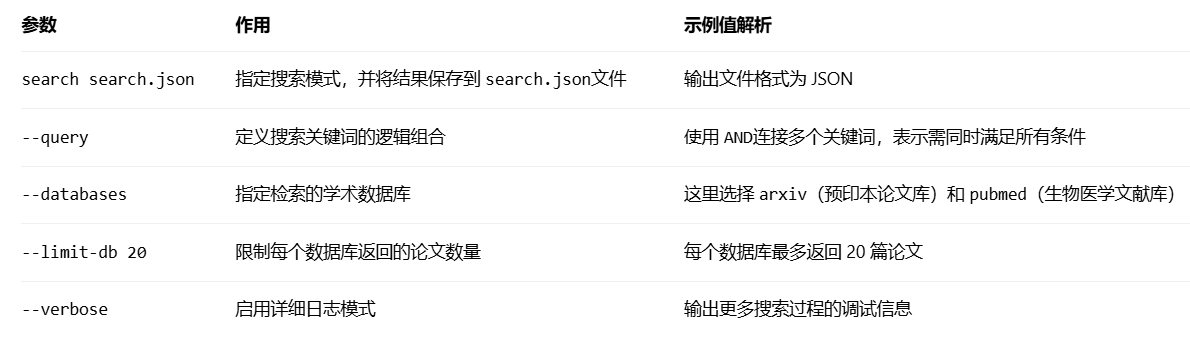 findpapers search search_broad.json --query "[...]" --databases "arxiv,pubmed" --limit-db 40 --verbose
