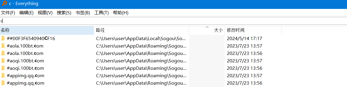 5.用 everything 软件对c盘进行搜索,大小排序,根据日期名称,看看是不是不需要了,就删掉