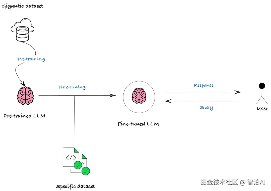 其核心理由是,微调能够"装备"大模型以更精细化的功能,例如整合本地知识库进行搜索、针对特定领域问题构建问答系统等。