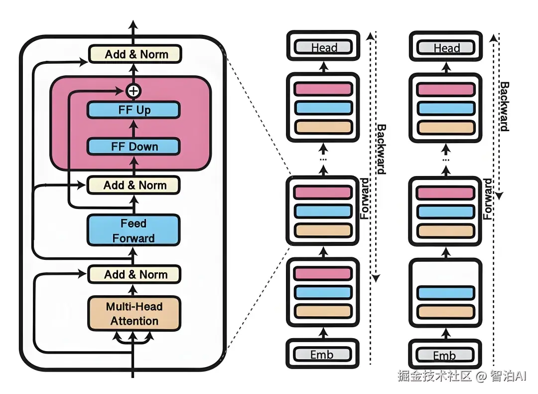 要深入理解各类微调手段,首先需要对网络架构有一个基本的认识。以下以 Transformer 为例,阐述各个模块的作用: