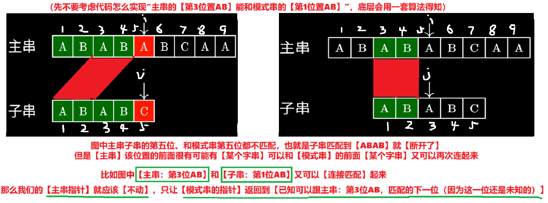 - 就说明当出现不匹配时,我们没必要再把让它两再次回到头,从头往后对比