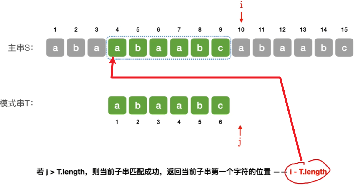 - 【i-j+1】就是回到**主串的【当前子串】**的开头第一位