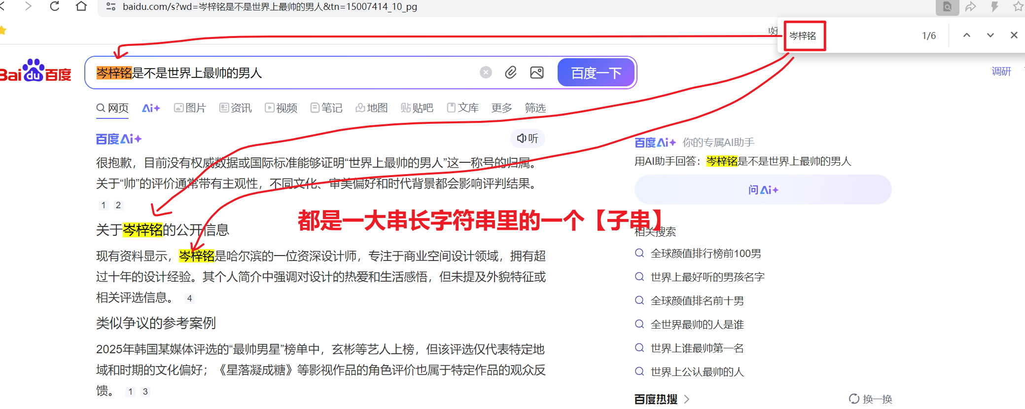 - 那就很简单,返回【这个子串第一个字符的位置】