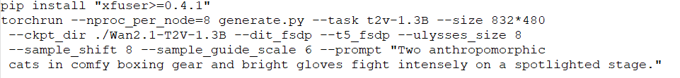 使用 FSDP + xDiT USP 进行多 GPU 推理执行视频生成: