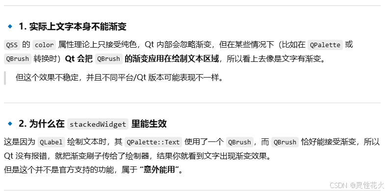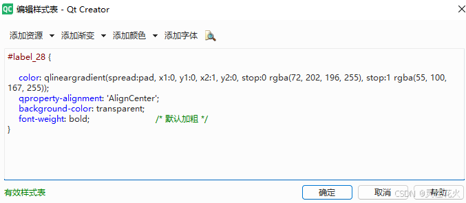qt的label中使用渐变不行,感觉并不支持渐变色,但是属性中有这个渐变。即使设置了也展示不行