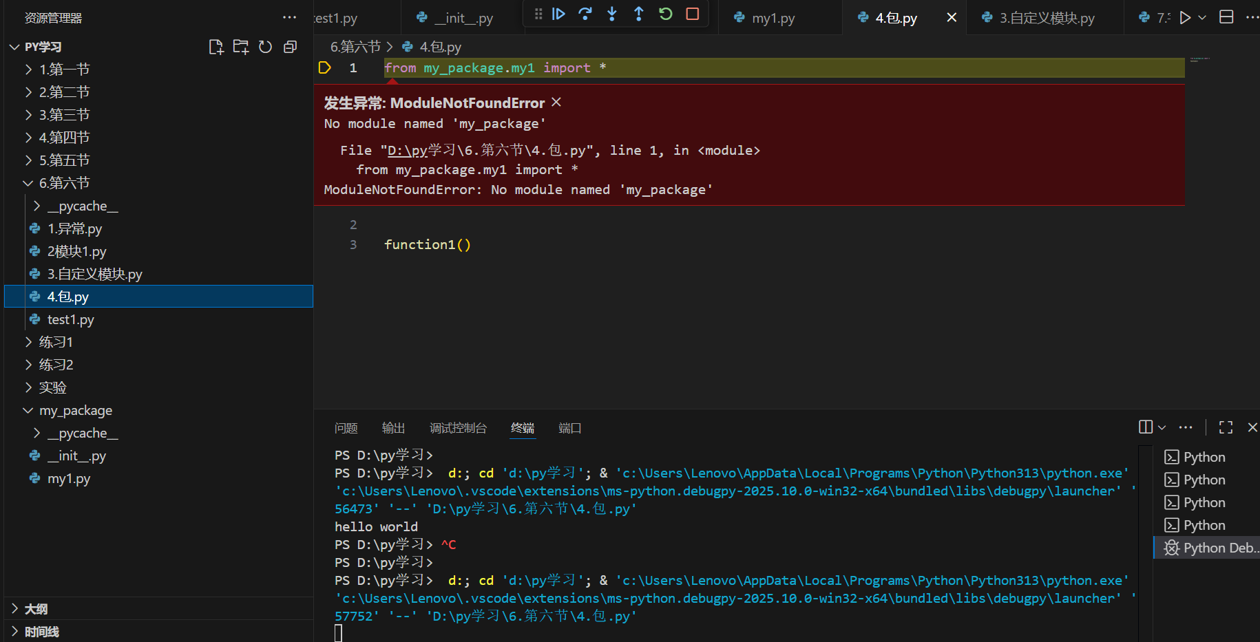 当自己定义一个包,里面写上对应的__init__.py对应的初始文件,然后紧接着写出对应的模块,方便进行调用,但是当这个包不在运行文件所在的文件目录下就会找不到这个包