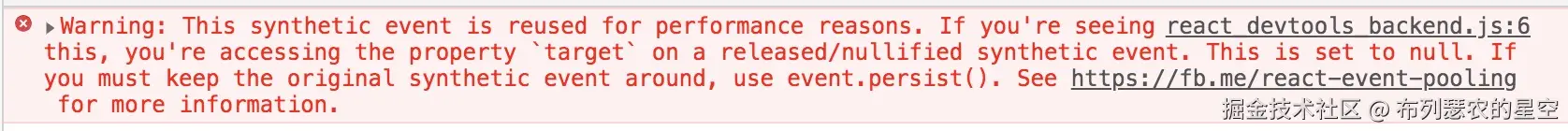 在React 16中,如果异步使用合成事件对象,会出现如下报错: