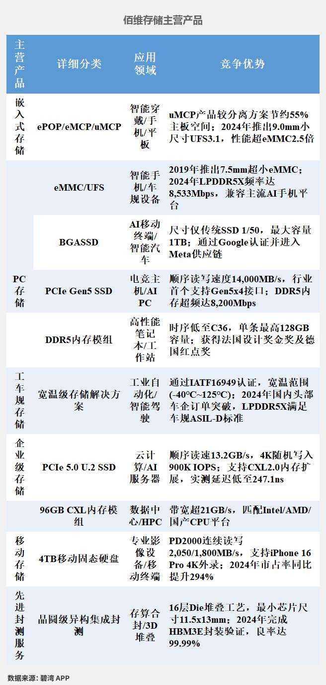 2024年公司的主营业务为存储行业,主要产品包括嵌入式存储、固态硬盘、移动存储三项,嵌入式存储占比48.24%,固态硬盘占比23.75%,移动存储占比18.37%。