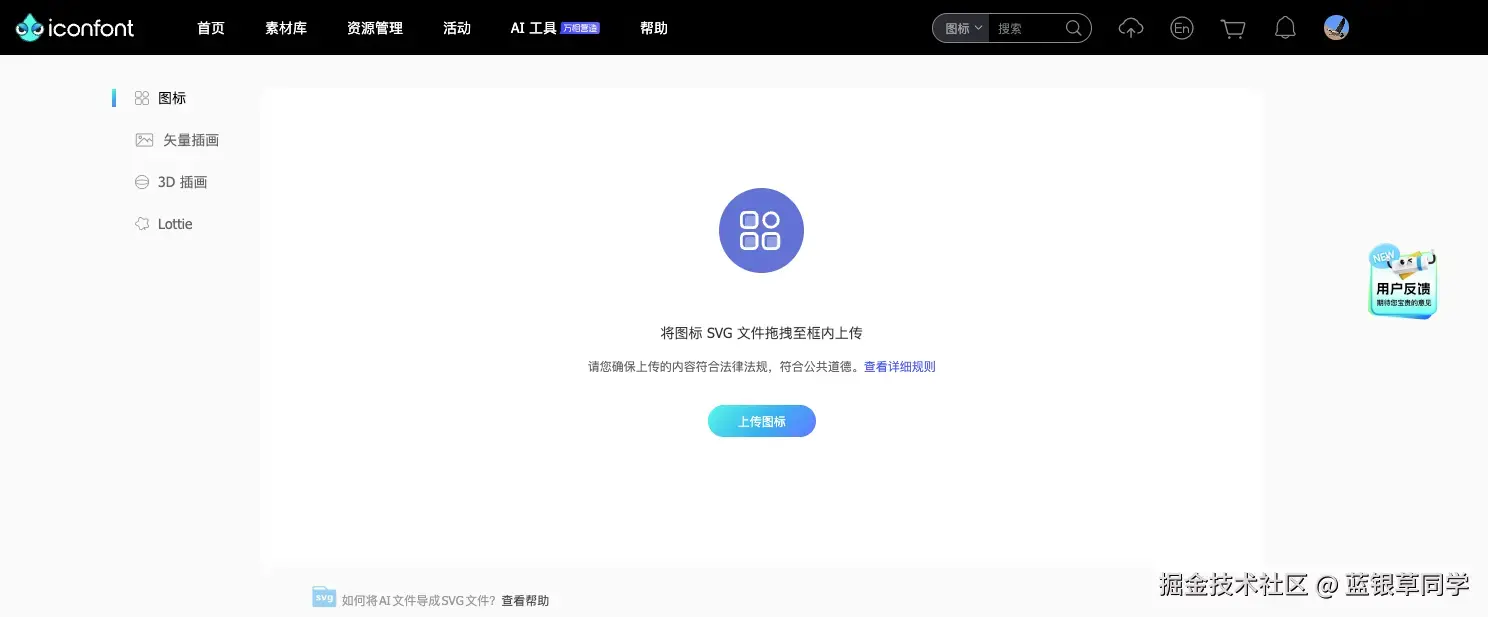 文件夹内的所有 SVG 文件批量拖入上传。 - 等待平台审核完成后,你就得到了一个全新的、可继续维护的图标库项目。