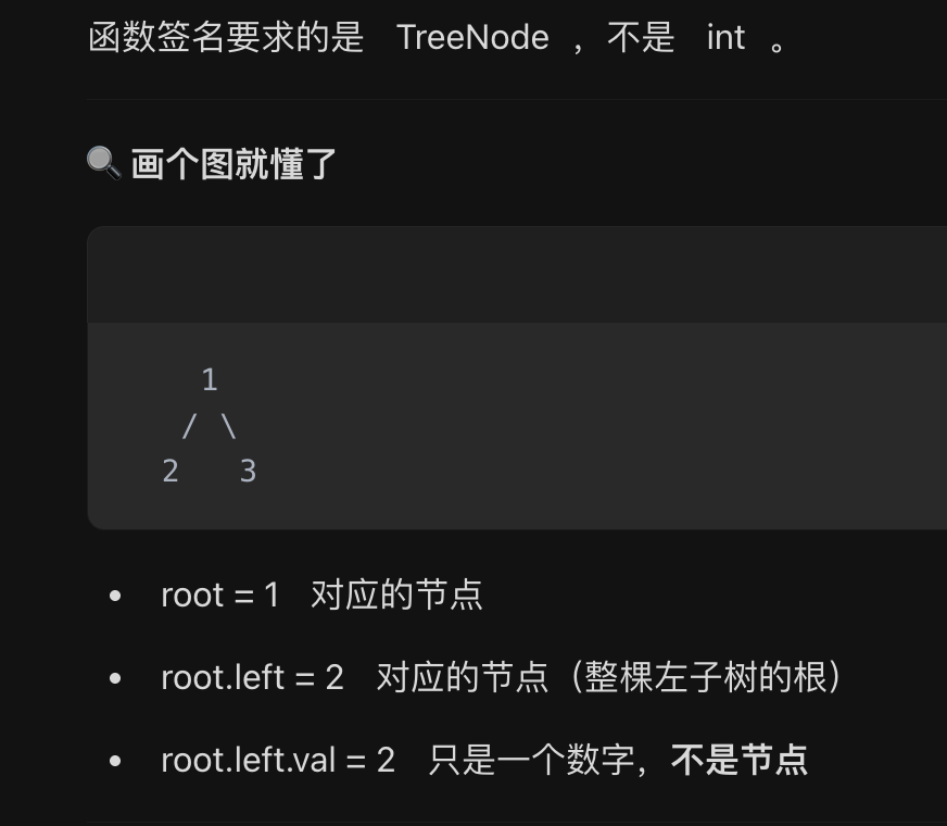 递归函数要的是"子树根节点",不是"子树根节点的值"。