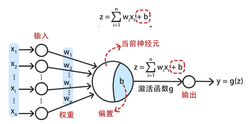 - 偏置用于调整神经元的输出,使其不依赖于输入信号。它确保了神经元的输出可以更灵活地表示各种关系。