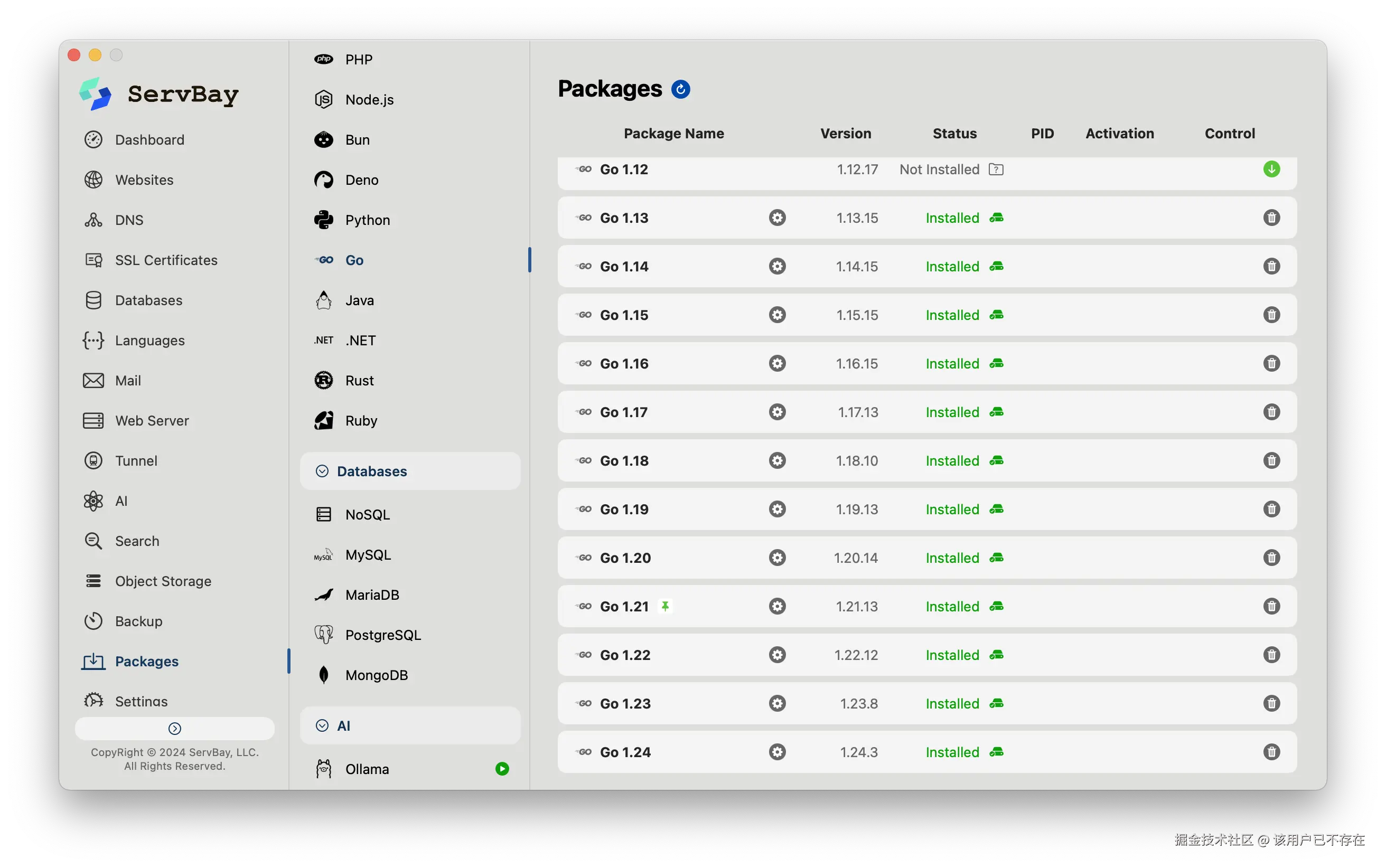 在开始之前,先介绍一个工具。写出优雅的代码,一个顺手的开发环境是基础。我自己现在用的是 ServBay,它给我最大的便利就是可以一键安装 Go 环境。特别是对于需要同时维护多个项目的开发者来说,ServBay 支持多个 Go 版本并存,互不干扰,切换起来非常方便。不用再手动配置 GOPATH