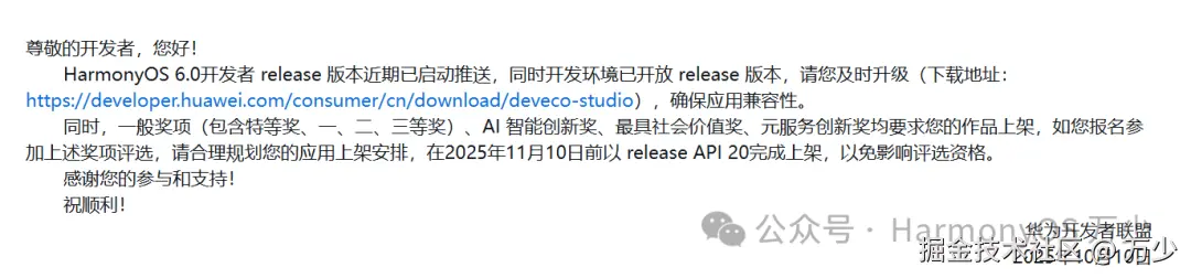 同样的,对于参加激励赛的小伙伴,按照最新要求,是必须要上架HarmonyOS 6版本的