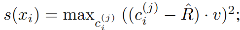 使用函数R将代码输入表示为Rd中的向量,其中R将xi和所有的上下文向量来计算M和v,并将xi的异常值分数设置为,异常值得分即为与v相关性最大的上下文向量的得分。