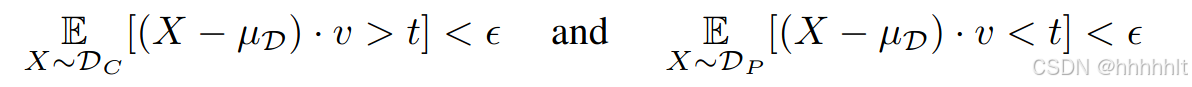 定义数据分布为:,DC为干净数据分布,DP为中毒数据分布,将有毒数据和干净数据分离的条件为 t>0且: