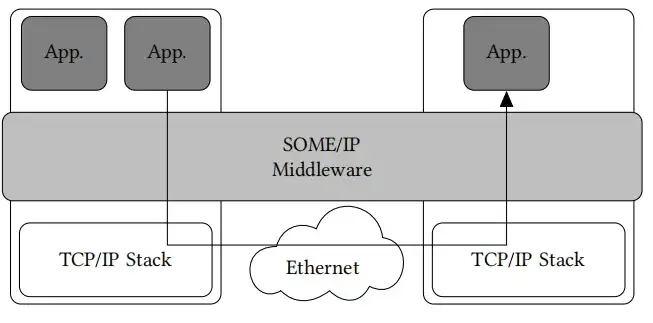SOME/IP 通常用于车载以太网网络,该网络可替代控制器局域网(CAN)总线、媒体定向系统传输(MOST)或 FlexRay 等部分传统车载网络技术。以太网的使用还使网络拓扑从总线结构转变为包含多个交换机的星形结构。根据文献的研究,第一代采用 SOME/IP 的车载以太网网络包含少量交换机和数量为两位数的以太网 ECU,每个 ECU 可提供数十项服务。