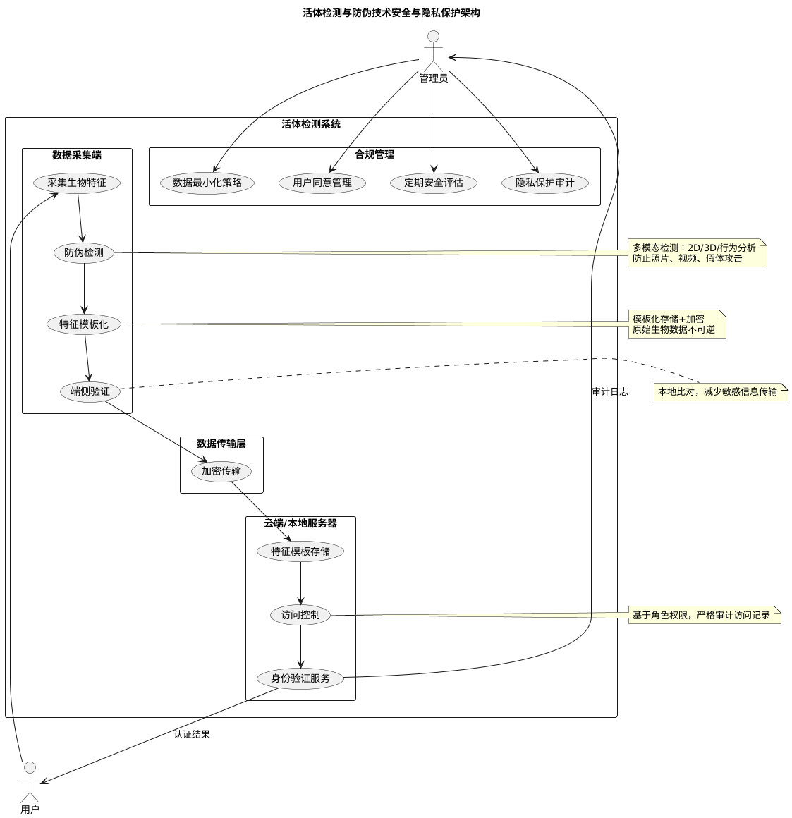 尽量在设备端完成活体检测和特征比对,减少敏感信息上传。