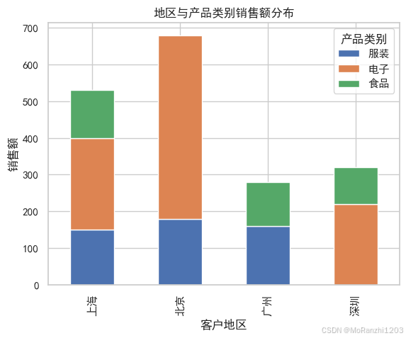 4.4 地区×产品类别销售额(堆叠柱状图)