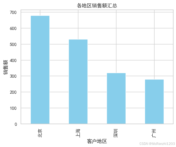 region_sales = df.groupby('客户地区')['销售额'].sum().sort_values(ascending=False)