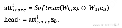 其中,i 表示第i个attention score,W_bi、W_ai是模型学习的权重参数。最终的用户多个长期兴趣表示: