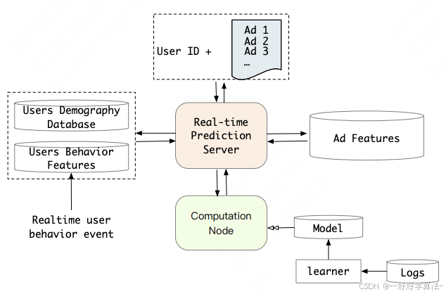 下图简单的描述了在线展现广告系统中的Real Time Prediction(RTP)系统。