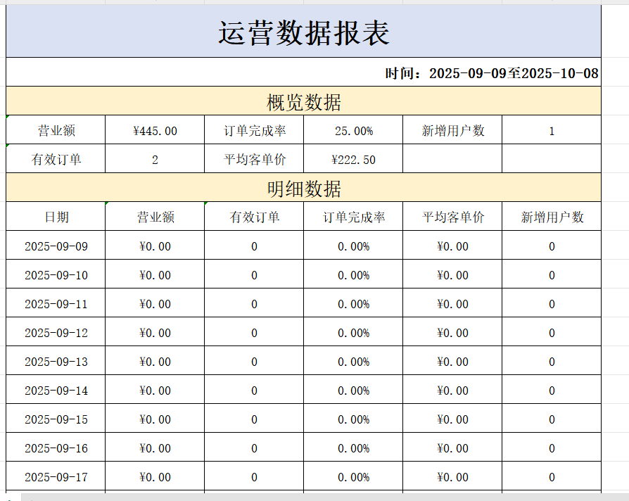 - 平均客单价 = 营业额 ÷ 有效订单数