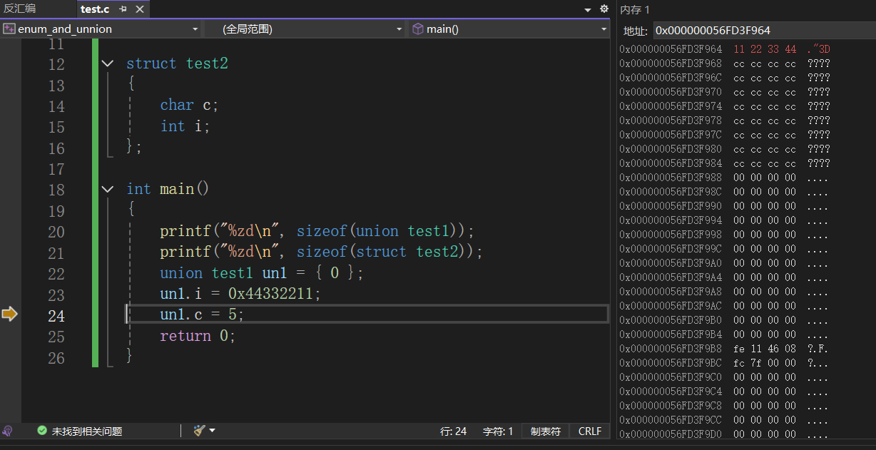 既然我们之前学过了结构体,那对于联合体是什么这个问题就很好解释了,先来看一段代码:
