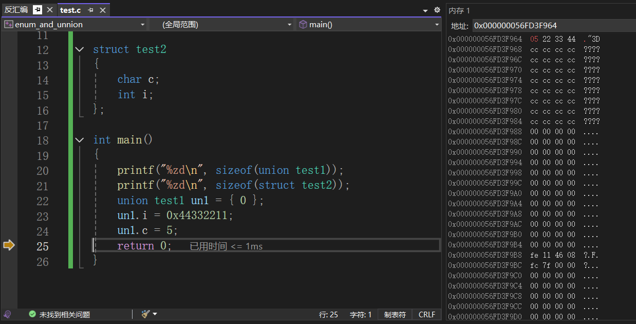 可以看到确实很符合联合体的特点:"所用成员共用一块内存空间 ",这也就是这个联合体只占四个字节看空间大小的原因了