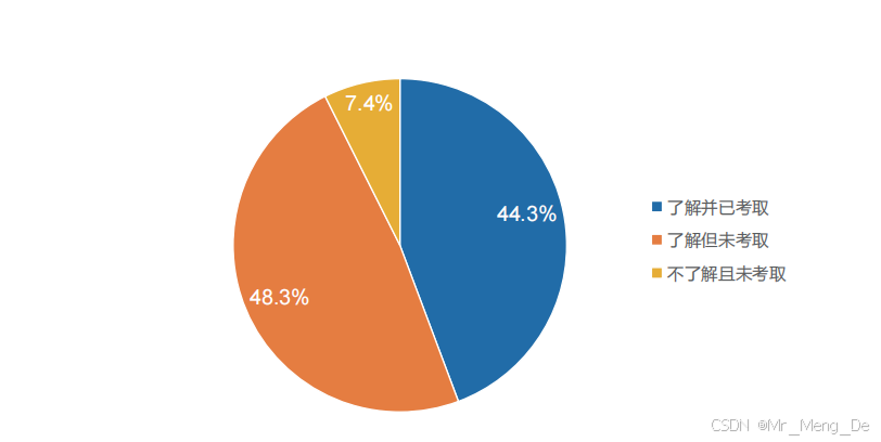 从调查数据看,近半数(48.3%)学生"了解但未考取"相关证书,反映出他们对证书价值有认知,却因备考难度、时间分配等,暂未完成考取;超四成(44.3%)学生"了解并已考取",说明部分学生行动力强,能将认知转化为成果,这类学生在专业实践与竞争中或有优势;仅7.4%学生"不了解且未考取",占比低,表明网络安全证书的普及度已较高,多数学生关注行业资质要求。整体而言,学生对证 书认知度高,但实际考取率仍有提升空间,院校可通过优化实践教学、开展备考指导,助力学生提升证书获取率,增强就业竞争力。