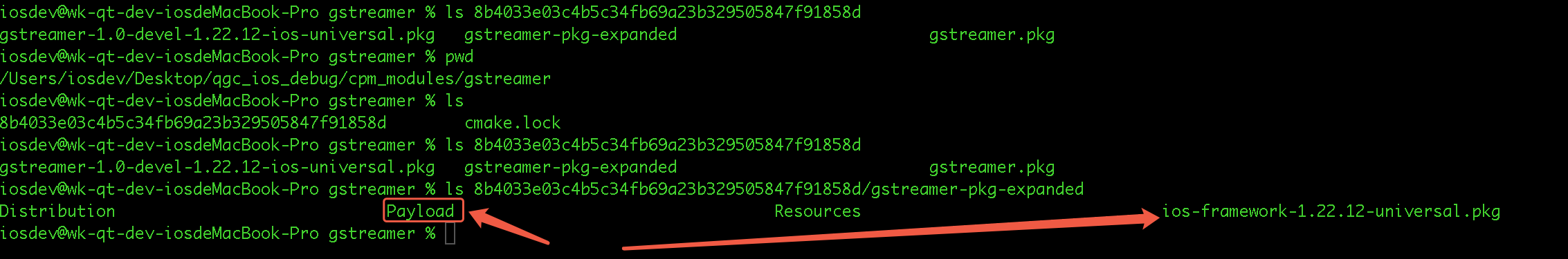 解压gstreamer-1.0-devel-1.22.12-ios-universal.pkg到gstreamer-pkg-expanded中