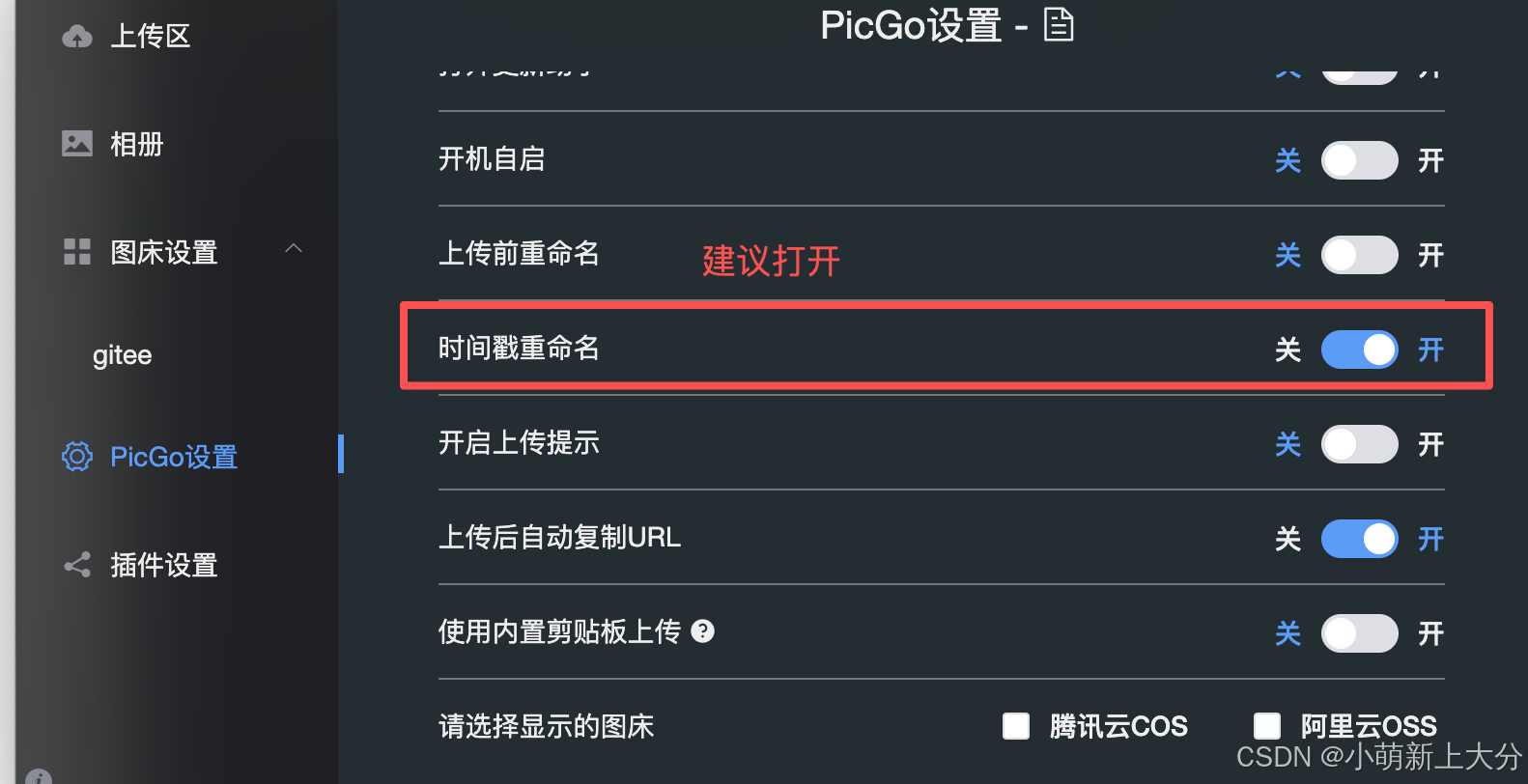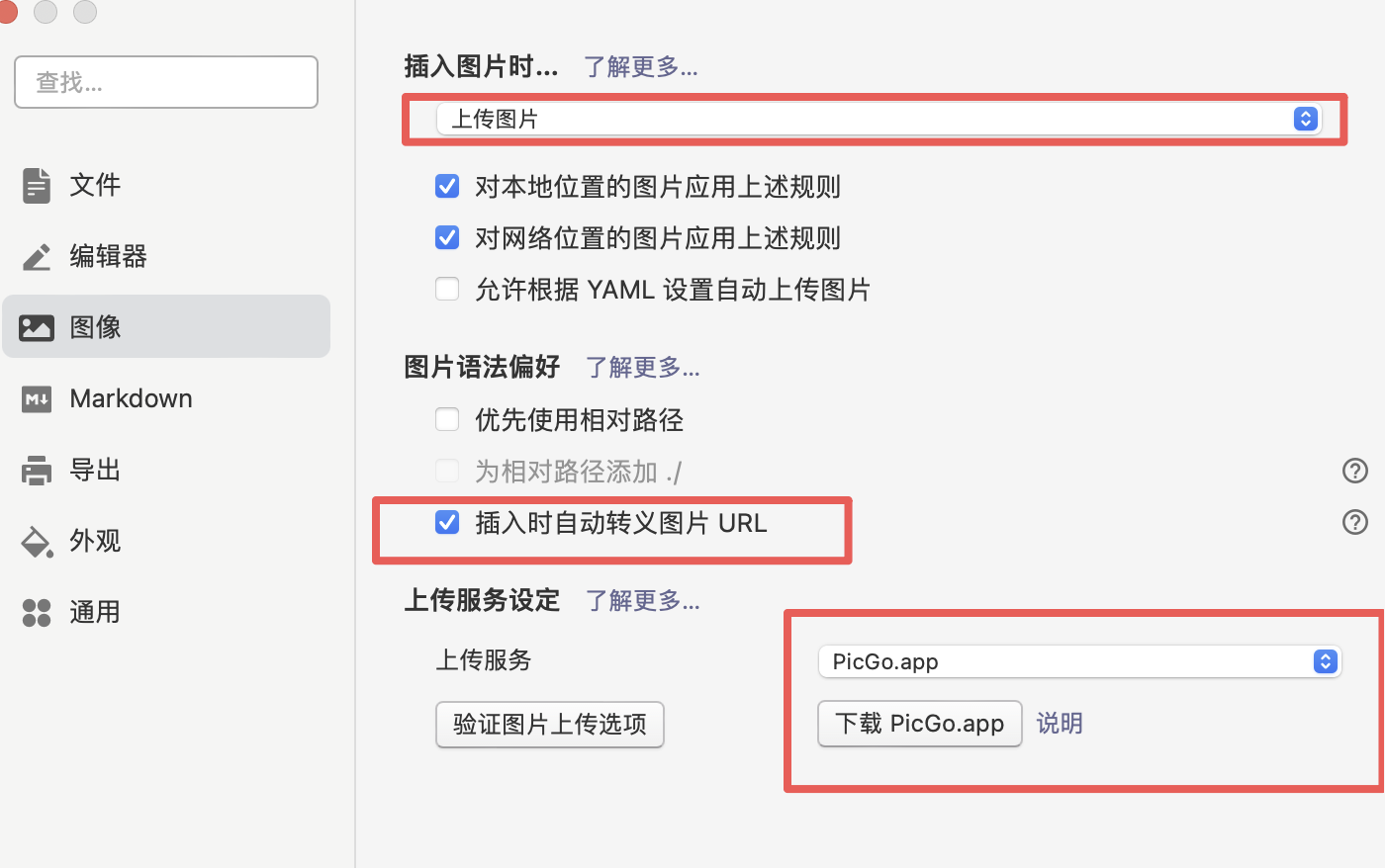 设置 → 图像 → 上传图片 → 图像上传服务选择 "PicGo (app)" 配置完成你在粘贴图片会自动上传并回显示